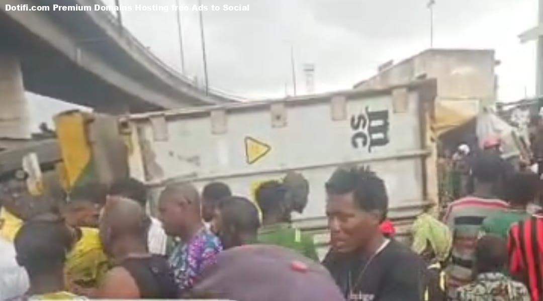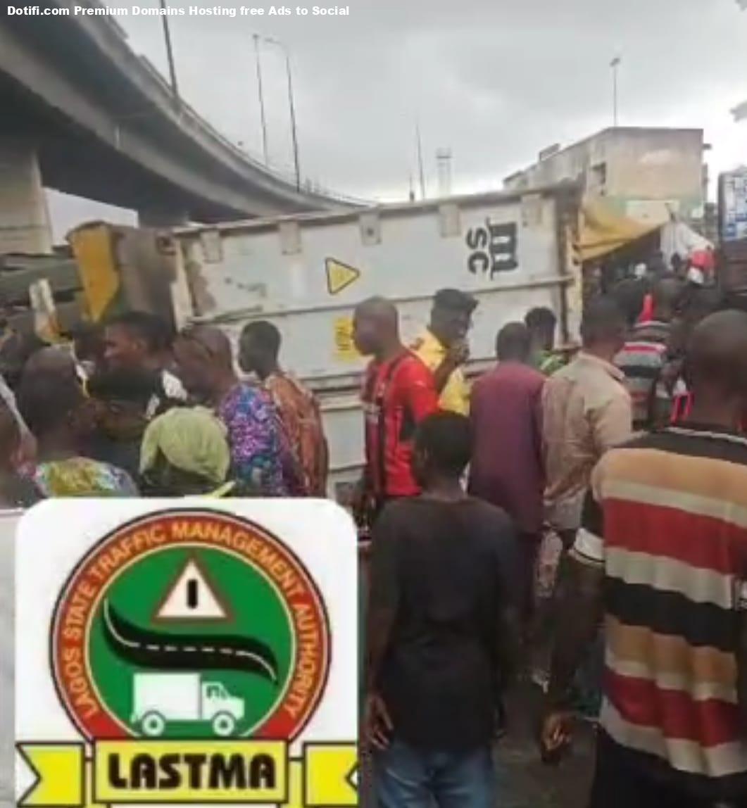 A 40-ft container fell on a commercial tricycle in the Ijora area of Lagos State, k!lling two passengers, including a police officer. The tricycle operator and another passenger sustained severe injuries in the accident which occurred on Tuesday, September 23, 2025. The Director, Public Affairs and Enlightenment Department of the Lagos State Traffic Management Authority (LASTMA), Adebayo Taofiq, who confirmed the incident in a statement said the surviving victims are currently under intensive medical care. According to Taofiq, a combined detachment of security personnel pacified irate onlookers, who had attempted to set the containerised truck ablaze. The Lagos State Traffic Management Authority (LASTMA) hereby confirms the occurrence of a most lamentable accident earlier today along Ijora Causeway, inward Ijora 7Up, involving an apple fully laden 40-foot container truck XP 368 AKD, which overturned upon a commercial tricycle KJA 364 QN conveying unsuspecting passengers, the statement read. Preliminary findings indicate that the articulated vehicle, while attempting a precarious manoeuvre beneath the Ijora Bridge, lost control and consequently capsized, fatally crushing a tricycle in its path. Regrettably, two passengers, including a serving Police Officer, were k!lled instantly. “The remains of the deceased Police Officer were subsequently conveyed to a morgue at Yaba by security operatives, while grief-stricken relatives of the second victim, a female passenger, hastened to the scene to retrieve the remains of their loved one. “In a valiant rescue operation spearheaded by LASTMA operatives in concert with allied emergency responders, two additional victims, including the tricycle operator, were extricated alive, though they sustained severe bilateral leg fractures. The injured were expeditiously transported by the Lagos State Ambulance Service (LASAMBUS) to Jimsan Hospital, Gasikiya, Ijora, for urgent medical intervention. To avert a descent into chaos, combined detachments of security personnel drawn from Badia, Trinity, and Kirikiri Police Divisions established robust security cordons. “Their decisive presence pacified irate onlookers, who had attempted to set the containerised truck ablaze, and safeguarded the emergency responders throughout the duration of the rescue operations. The General Manager of LASTMA, Mr Olalekan Bakare-Oki, has expressed profound condolences to the bereaved families of the late Police Officer and the deceased female passenger, describing the tragedy as deeply grievous and most regrettable. He further offered prayers for the swift recuperation of the two surviving victims who remain under intensive medical care. Bakare-Oki equally lauded the combined emergency and security agencies for their prompt intervention, commendable professionalism, and proactive measures, which forestalled further fatalities and prevented escalation of the situation. The Authority hereby reiterates its earnest admonition to truck operators and articulated vehicle drivers to exercise the highest degree of caution, particularly when negotiating bridges, intersections, and densely trafficked corridors, so as to avert the recurrence of such calamitous incidents.”